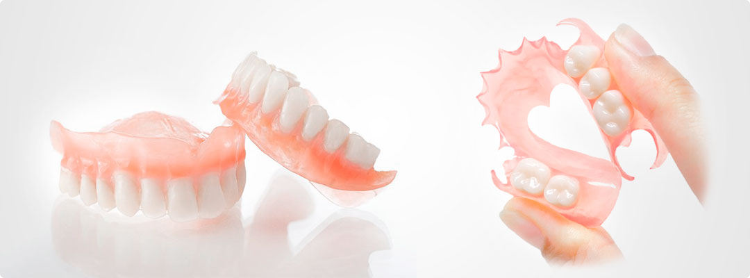 Используются при полном отсутствии зубов на одной или обеих челюстях. Фиксируются за счет присасывающего эффекта или специальных кремов. - Частичные съемные протезы